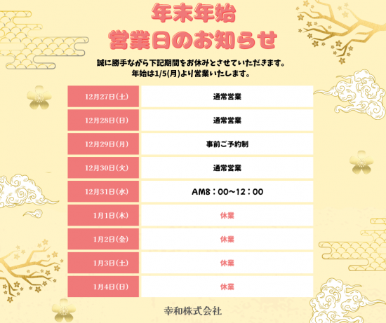 年末に向けて皆さんも忙しい時期になります(*'▽')